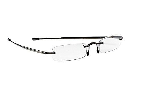 Our patented collection of reading glasses for reading scorecards are small enough to fit in your golf bag and feature a stylish black frame and optical-quality polycarbonate reading lenses. Designed to fold easily into the included flip-top case, our rimless readers also feature unique spring-hinged stainless steel temples.