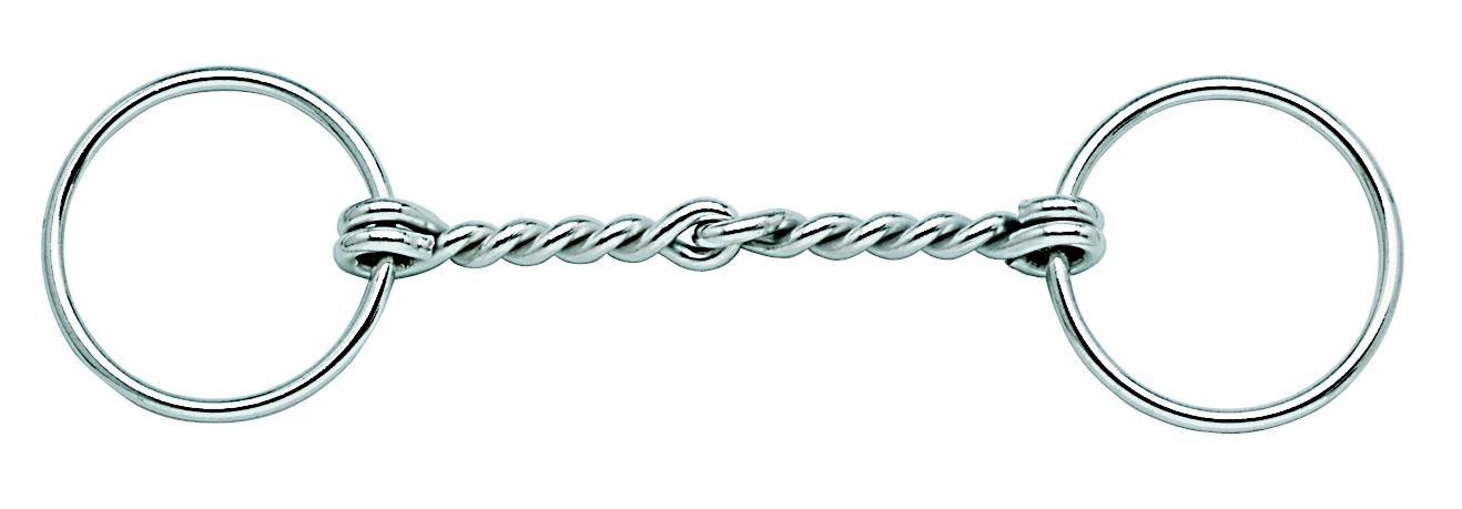 This stainless steel draft bit features a 6'' single twisted wire snaffle mouth and 3'' rings. Size: 6